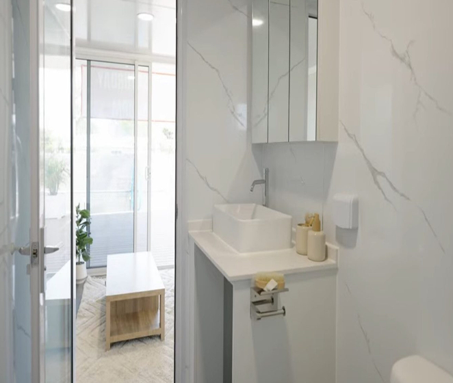 | Bathroom | Shower, Toilet, Vanity, Sink, Cabinet & Water heater (included) |