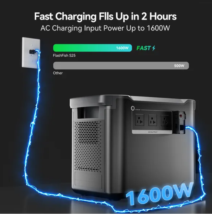 Stay prepared for off-grid living, outdoor adventures, or home backup with the Flashfish S25.This 1997 Wh LiFePO₄ (LFP) power station delivers reliable, clean energy with a 2,000 W pure-sine AC inverter (surge up to 4,000 W), powering most household appliances with ease.